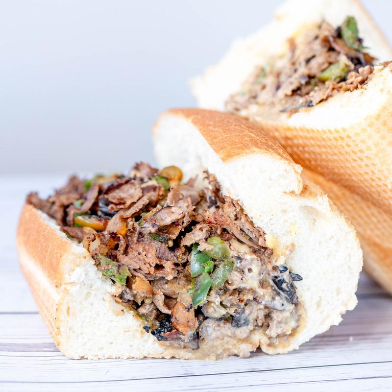 Sub Roll, American, Mushrooms, Grilled Onions, and Grilled Peppers